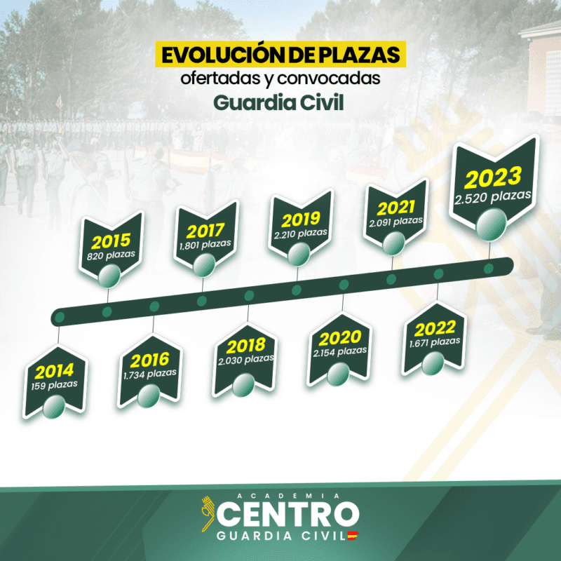 2520 plazas para Guardia Civil. 859 plazas más que el año pasado. La mayor oferta desde 2010.